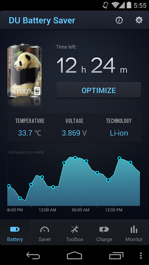 ★ Display battery usage and time since last unplugged, estimated battery run out time, battery health status, voltage, temperature, etc. information